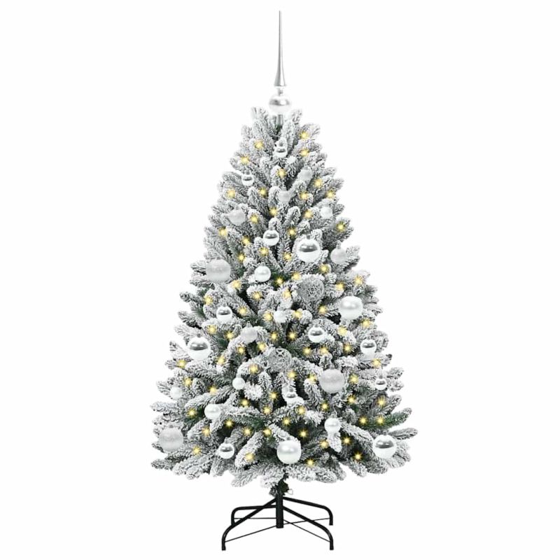 С изкуствено коледно дърво Зелен и бял 120 cm PVC и метал