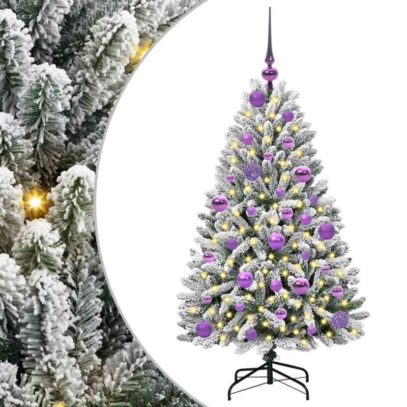 С изкуствено коледно дърво Зелен и бял 120 cm PVC и метал