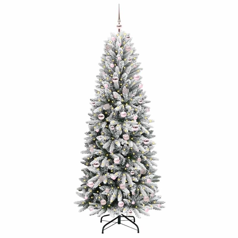 С изкуствено коледно дърво с 300 LED светодиода Бяло 210 cm