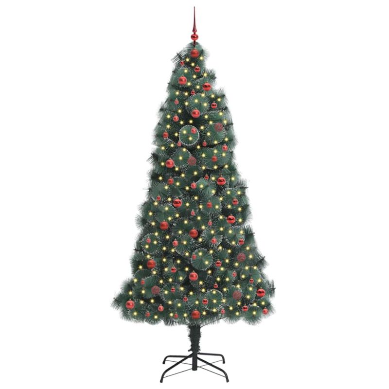 Изкуствено предосветено коледно дърво с комплект топки 240 cm