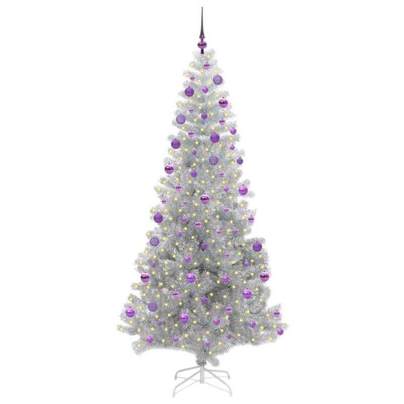 Коледно дърво с 300 LED светодиода Сребрист 210 cm PET