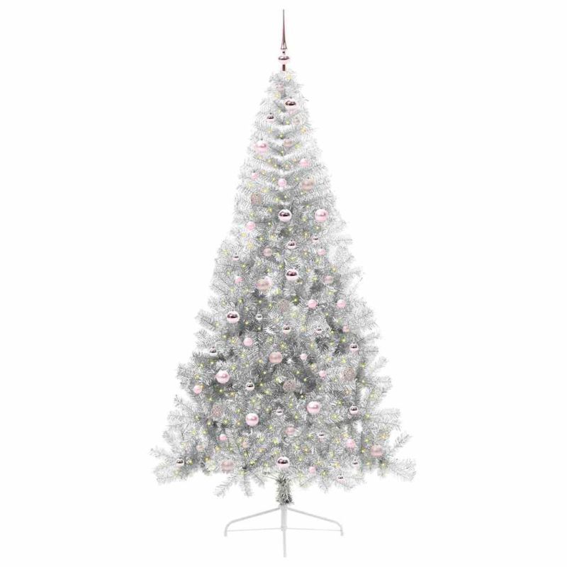 Изкуствена коледна елха с подсветка Сребрист 240 cm PET