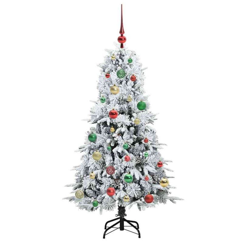 Изкуствено коледно дърво с хингед Бяло 150 cm PE и PVC