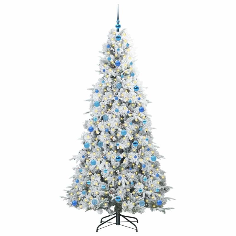 Изкуствено коледно дърво с хингед Бяло 210 cm PE и PVC