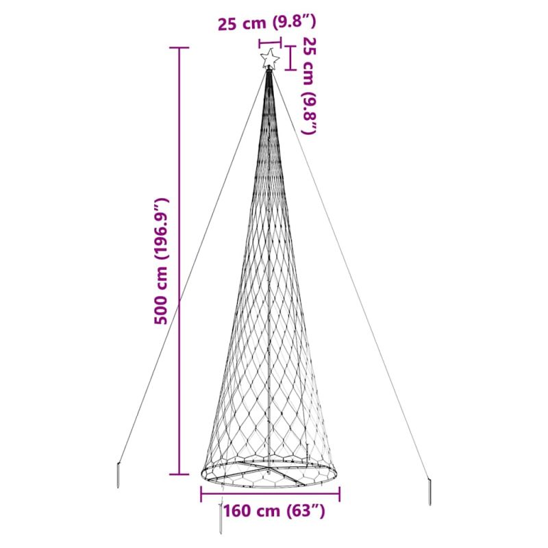 LED Коледна Елха с поставка Синьо 160 х 160 х 500 см Метал