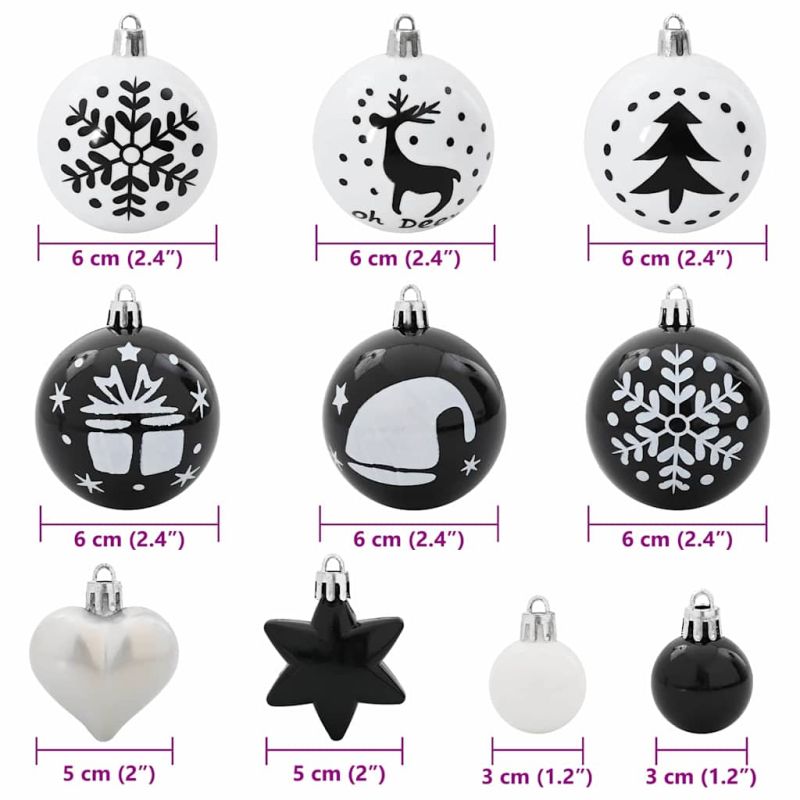 Комплект коледни топки 40 pcs Черен и бял Пластмаса
