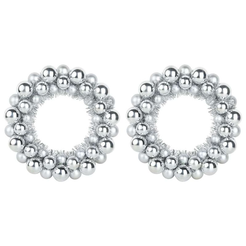 Коледни топки венци 2 pcs Сребрист 33 x 33 x 7 см Полистирен