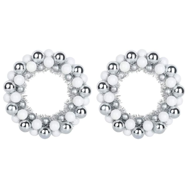 Коледни топки венци 2 pcs Бяло и Сребристо 33 x 33 x 7 см