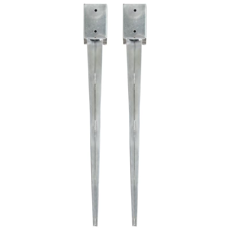 Заземителни колове 2 бр сребристи 9x9x90 см поцинкована стомана