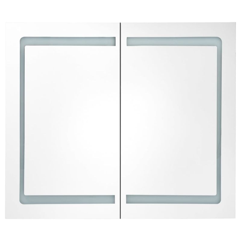 LED шкаф с огледало за баня, бяло и дъб, 80x12x68 см