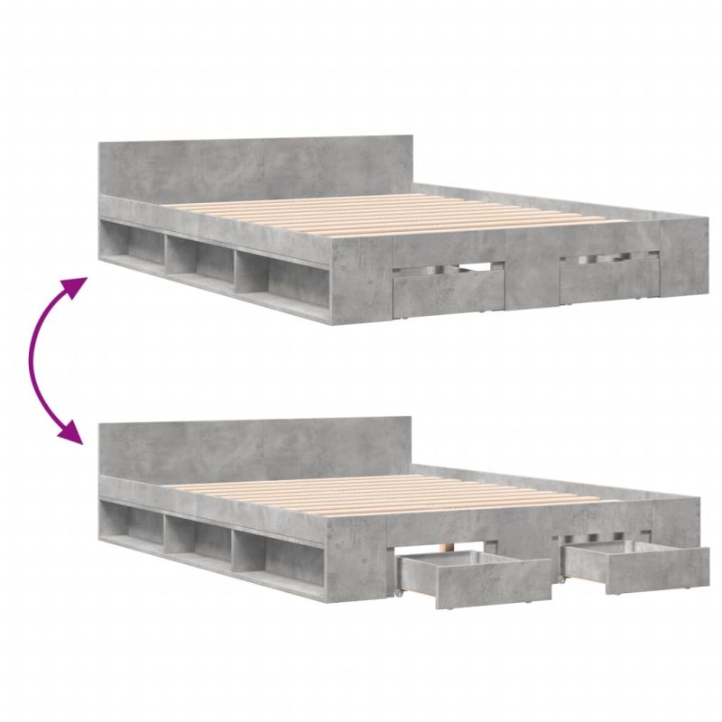 Рамка за легло с чекмеджета, бетонно сива, 120x200 см