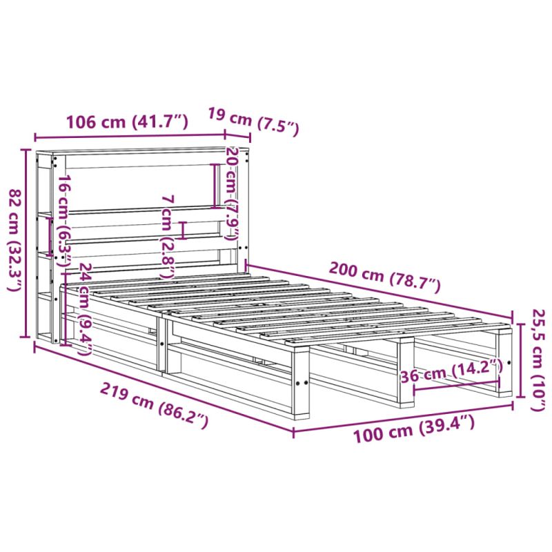 Насладете се на добър нощен сън с тази дървена рамка за легло! Тя ще бъде практично и декоративно допълнение към вашия интериор. Стабилна и дълготрайна рамка: Масивната борова дървесина е известна със своята здравина и издръжливост. Нейните прави зърна и отличителни възли допринасят за рустик чара ѝ.Достатъчно място за съхранение: Тази елегантна табла разполага с удобни рафтове, предлагащи достатъчно място за съхранение, за да държите всичките си основни вещи през нощта леснодостъпни.Гъвкава табла: Тази рамка за единично легло се предлага с табла, която осигурява отлична опора за гърба, когато седите в леглото, за да четете или гледате телевизия, като същевременно служи и като декоративен елемент.Решетъчна основа за оптимална опора: Основата за легло е оборудвана с решетъчна основа за опора и дишане на вашия матрак. Добре е да се знае:Към това легло не е включен матрак. Ние предлагаме разнообразна селекция от матраци. Можете да проверите нашия магазин за подходящ матрак.