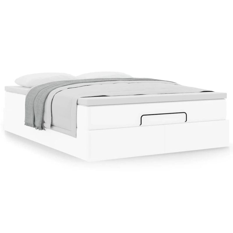 Османско легло с матрак Бяло 140x190cm изкуствена кожа