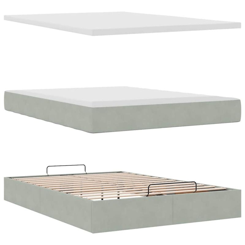 Османско легло с матрак Светло сиво 140x190 cm Кадифе