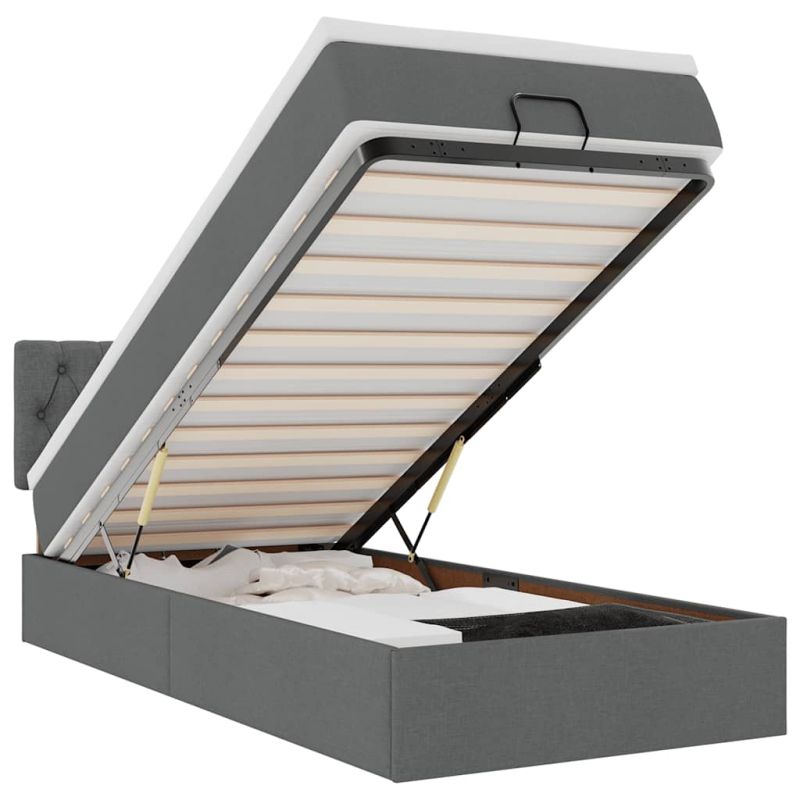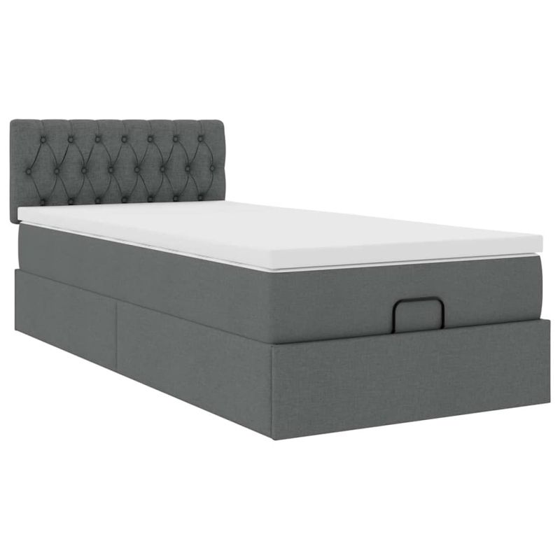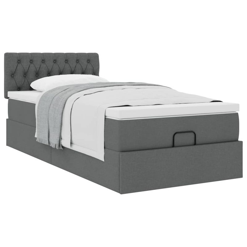 Османска легло с матрак, тъмносиво, 90x190 см, плат