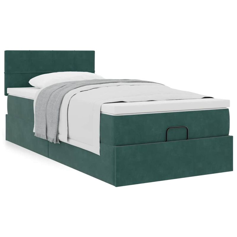 Османска легло с матрак, тъмнозелено, 80x200 см, кадифе