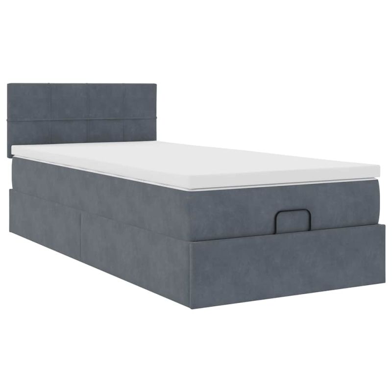 Османска легло с матрак, тъмносиво, 90x190 см, кадифе