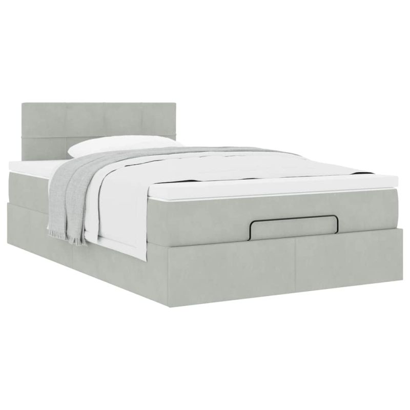 Османска легло с матрак, светлосиво, 120x190 см, кадифе