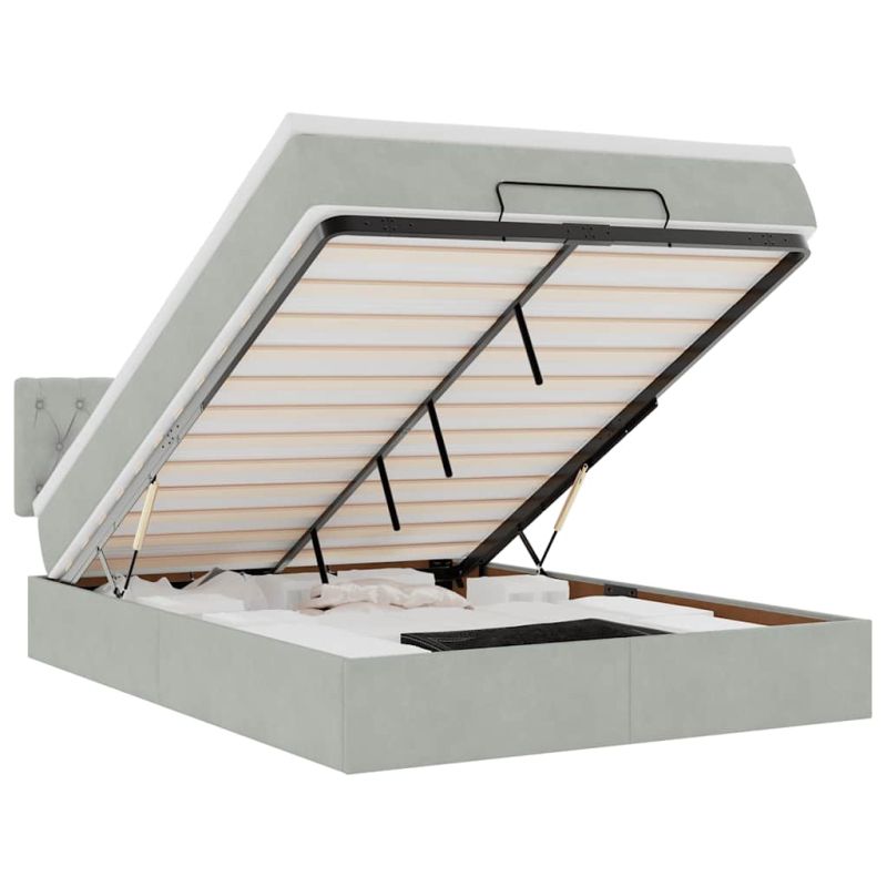 Използвайте това легло с матрак, за да се насладите на спокоен нощен сън! То ви предлага едновременно решение за съхранение и комфортен сън. Мек и удобен материал: Кадифената материя се отличава с мека и гладка повърхност, която създава приятно усещане върху кожата, като ви носи топлина и максимален комфорт.Матрак с джоб пружини: Този матрак с джоб пружини има индивидуални пружини с джобчета, които работят независимо, за да осигурят персонализирана опора, като реагират само на натиска във всяка област. Този дизайн предотвратява "свличането" към средата на матрака и намалява прехвърлянето на движение в сравнение с традиционните матраци с отворени намотки. Всяка покет пружина поддържа тялото индивидуално.Достатъчно място за съхранение под леглото: Благодарение на хидравличния повдигащ механизъм рамката на леглото предлага обширно пространство за съхранение под леглото, което увеличава пространството, без да заема допълнителна площ. Само с едно издърпване на дръжката основата на ламелите се повдига плавно, което ви позволява да прибирате вещите си бързо и без усилие.Удобен горен матрак: Този топ матрак подобрява опората и комфорта със своята мека, дишаща повърхност, като същевременно удължава живота на вашия матрак. Подвижният му калъф позволява лесно изпиране, което прави поддръжката лесна. Добре е да се знае:От хигиенни съображения матракът не може да бъде върнат, ако опаковката е отстранена или отворена.