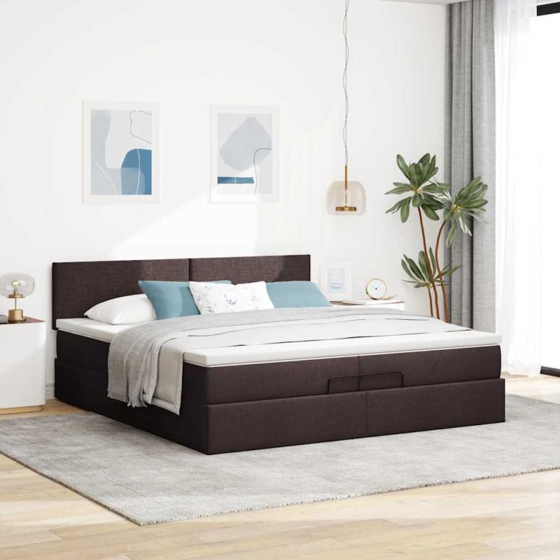 Османска легло с матрак и LED, тъмнокафяво, 200x200 см, плат