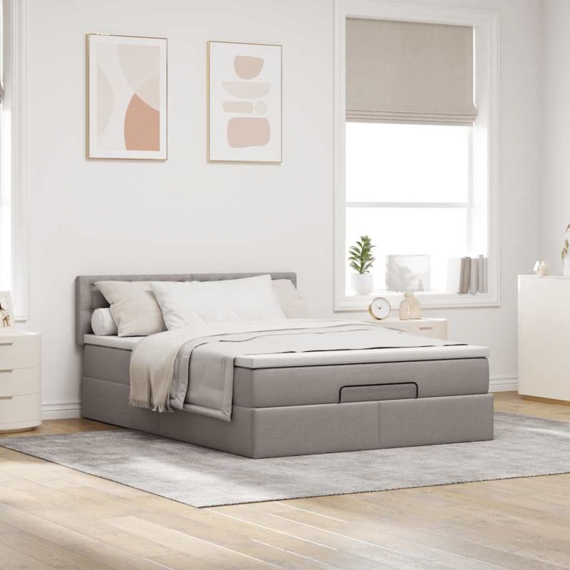 Османска легло с матрак и LED, кафяво, 140x190 см, плат