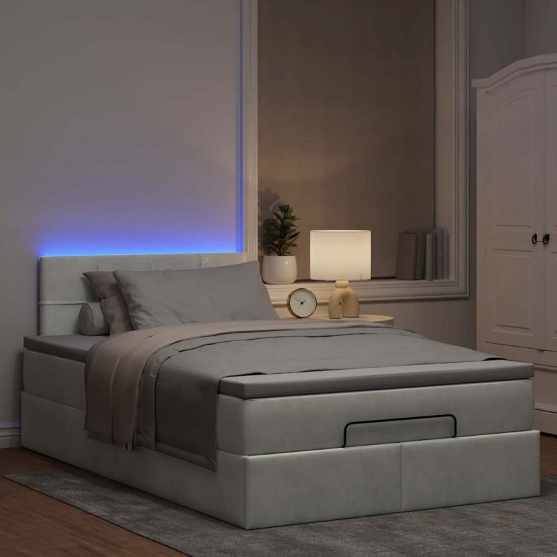 Османска легло с матрак и LED, светлосиво, 120x190 см, кадифе