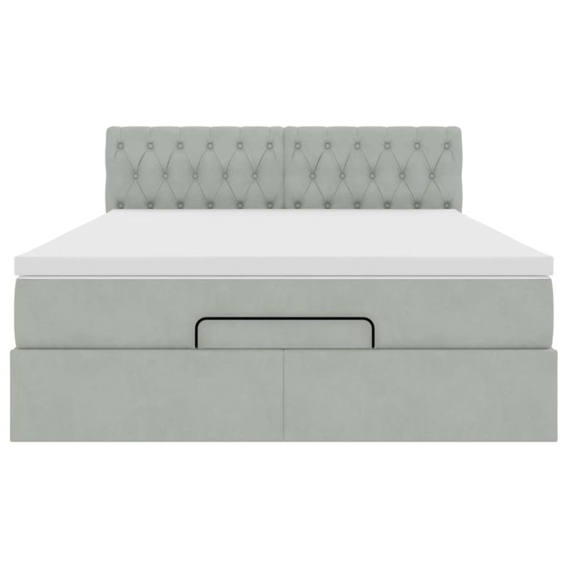 Османска легло с матрак и LED, светлосиво, 140x190 см, кадифе