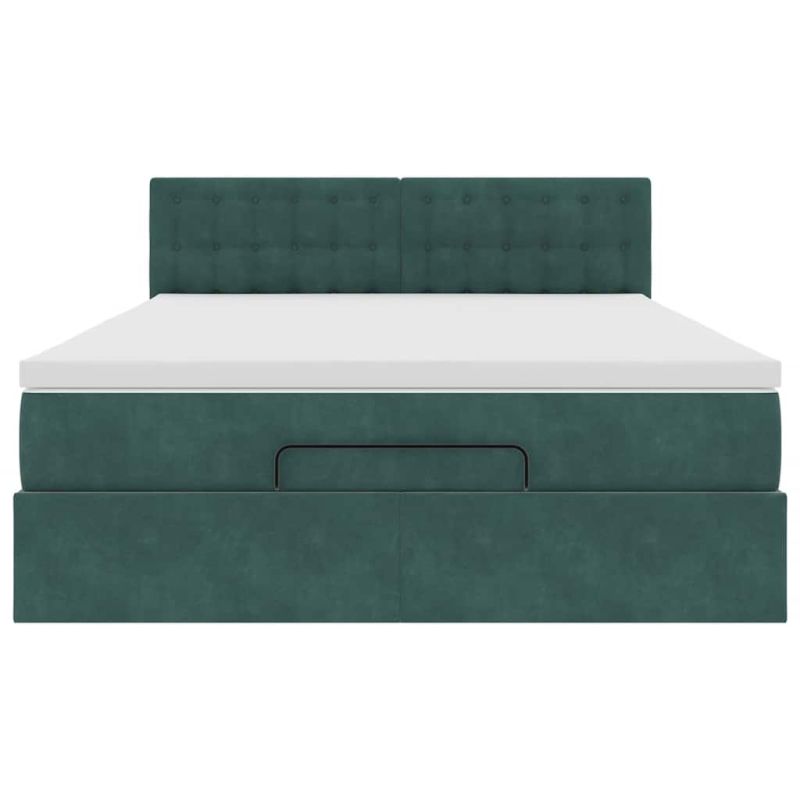 Османска легло с матрак и LED, тъмнозелено, 140x190 см, кадифе