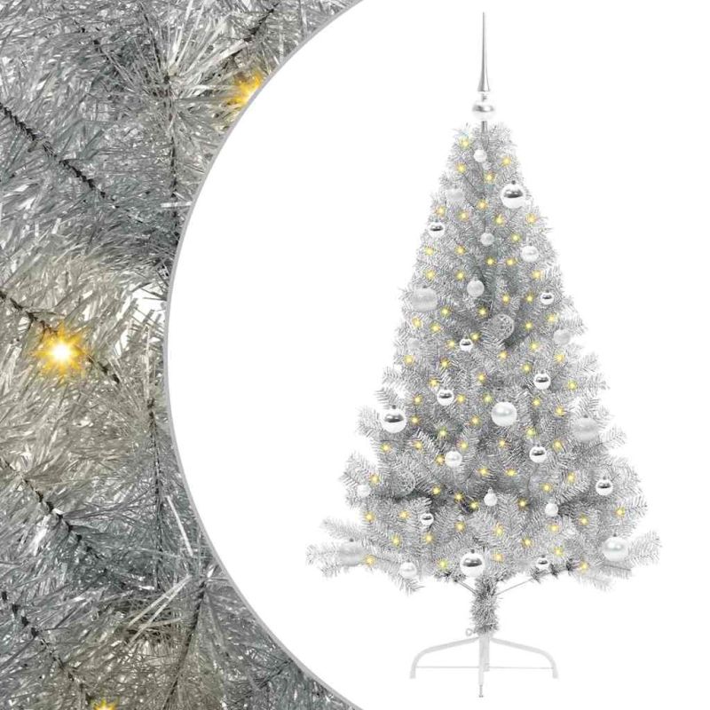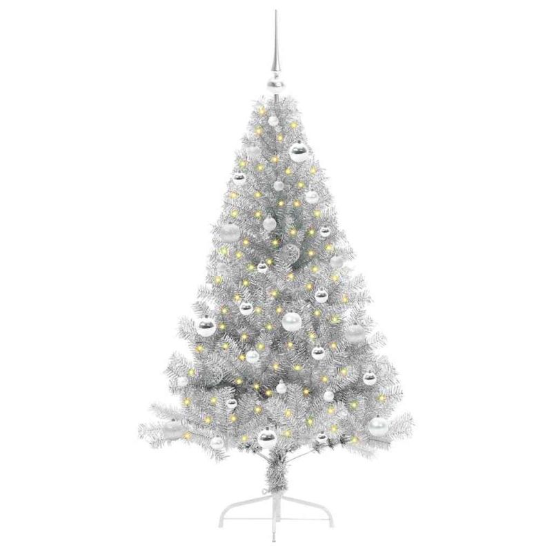 Изкуствена коледна елха с подсветка Сребрист 150 cm PET
