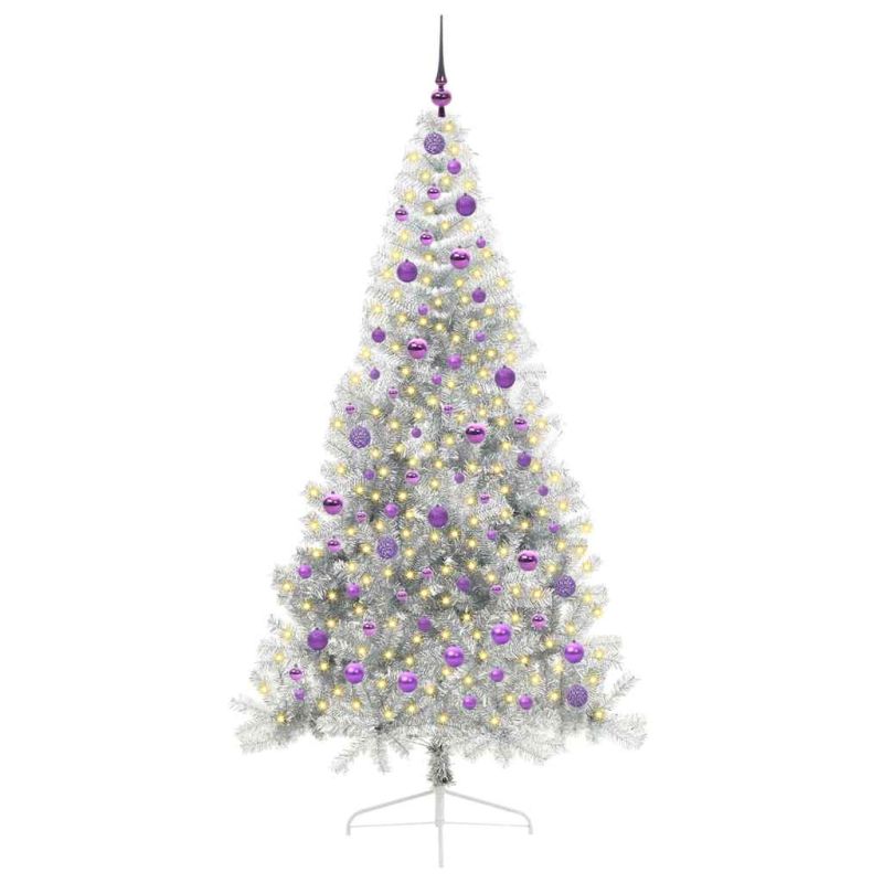 Изкуствена коледна елха с подсветка Сребрист 210 cm PET