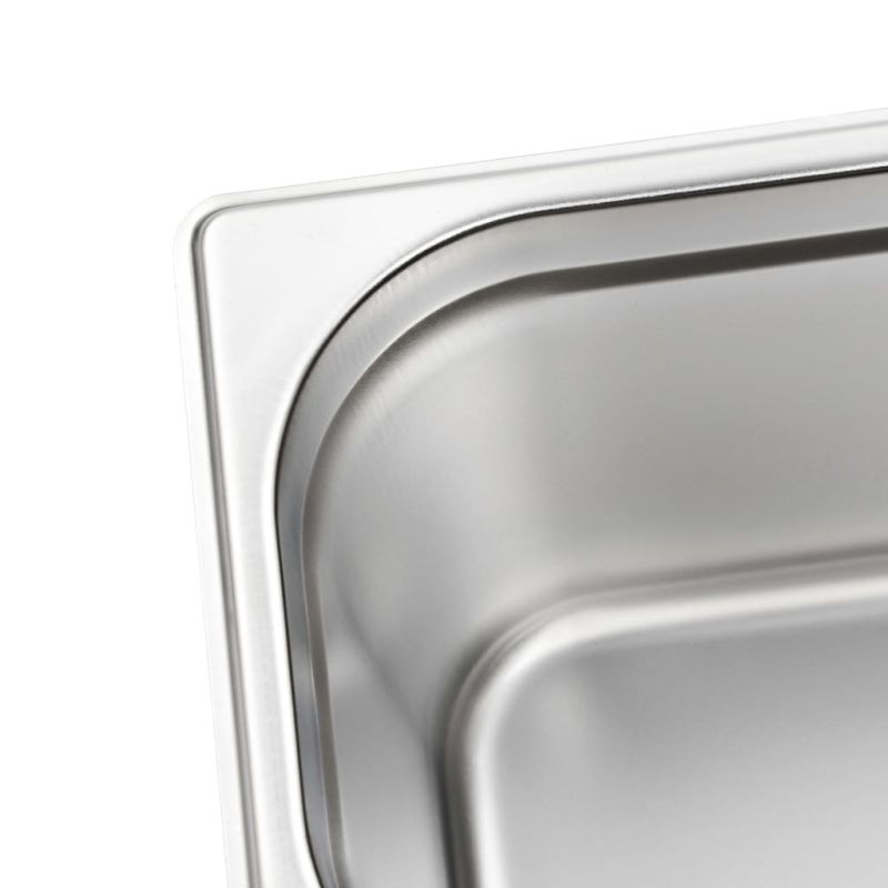Тези стифиращи гастронорм контейнери ще бъдат чудесно допълнение към вашите кухненски съдове. Изработен от здрава неръждаема стомана, контейнерът за бен мари се отличава със здрава конструкция и се почиства лесно. Устойчивият материал предпазва тавите от драскотини и ги прави лесни за поддръжка. Тавата е с размери по стандарт гастронорм, което позволява универсална употреба и най-различни комбинации. Следователно тя ще се впише перфектно във всичките ви професионални кухненски шкафове и оборудване, като електрически сушилни, машини за миене на съдове и салатни барове. Съдовете могат да се подредят един в друга и да се приберат, за да пестят място, затова са много практични и идеални за използване в ресторанти, хотели, партита, както и у дома. Доставката включва 4 тави.