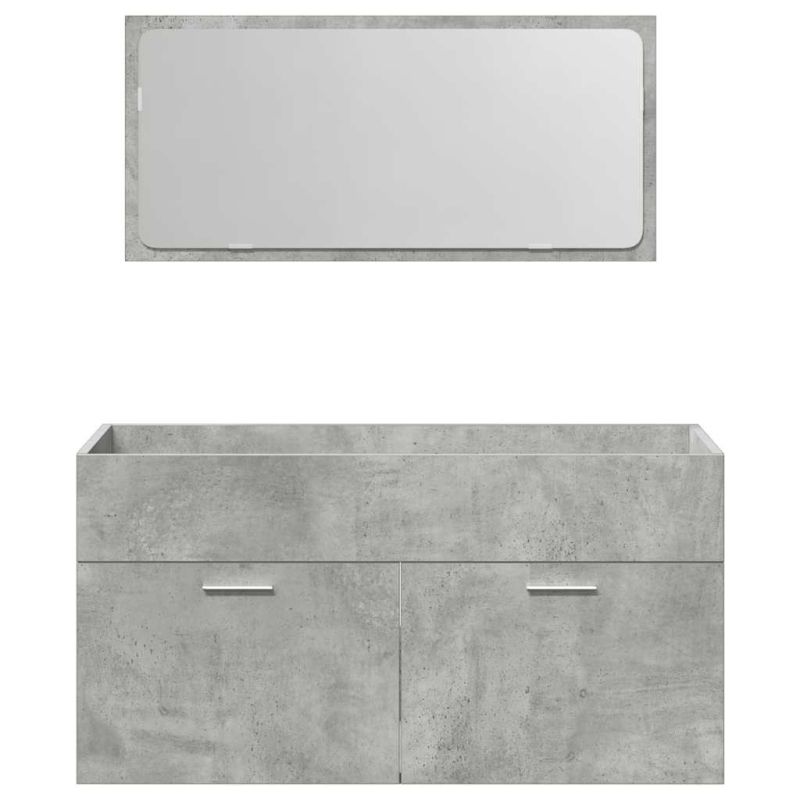 Шкаф за баня с огледало, бетонно сиво, инженерно дърво