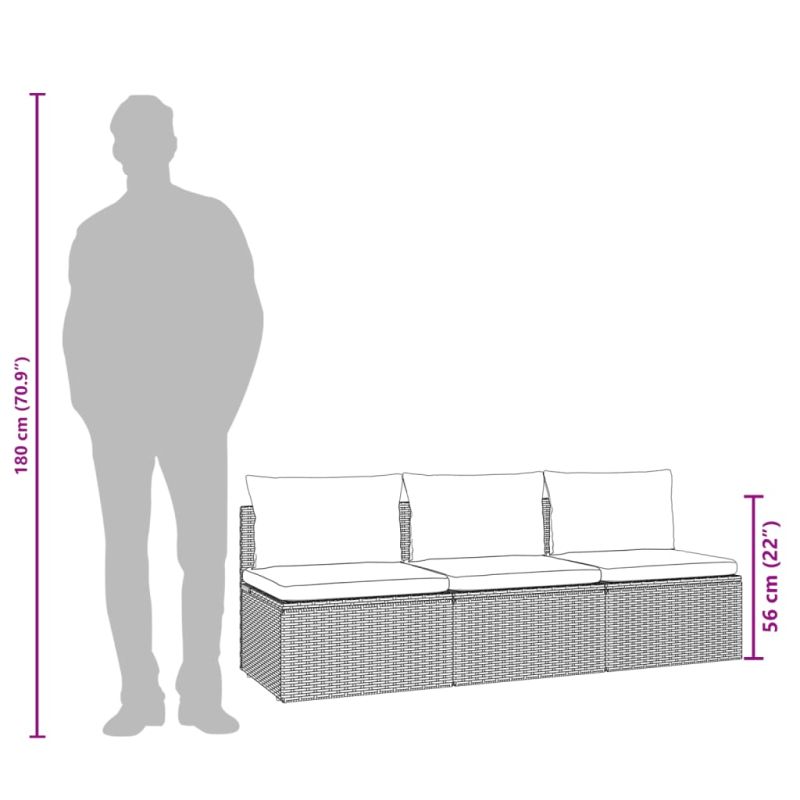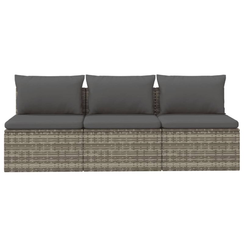 3-местен градински диван с възглавници, сив, полиратан