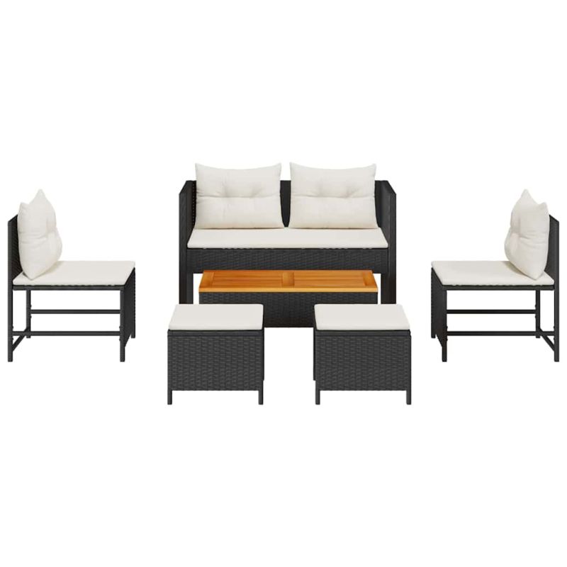 Градински Софа Комплект 6 pcs Черно и кремаво полиратан