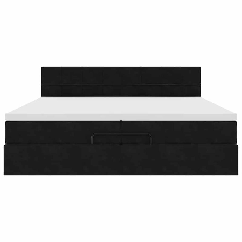 Османска легло с матраци и LED, черно, 200x200 см, кадифе