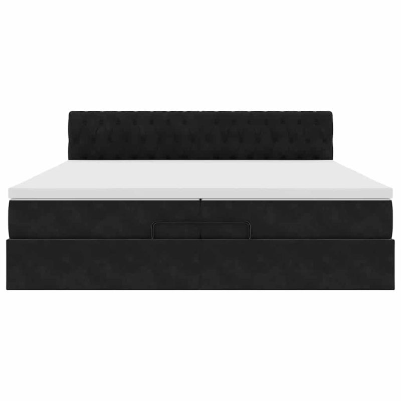 Османска легло с матраци и LED, черно, 200x200 см, кадифе