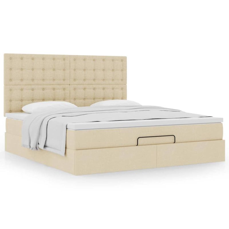 Османска легло с матрак, кремаво, 180x200 см, плат