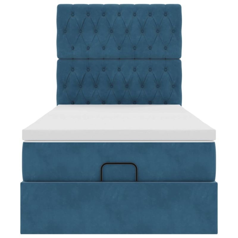 Османска легло с матраци и LED, тъмносиньо, 80x200 см, кадифе