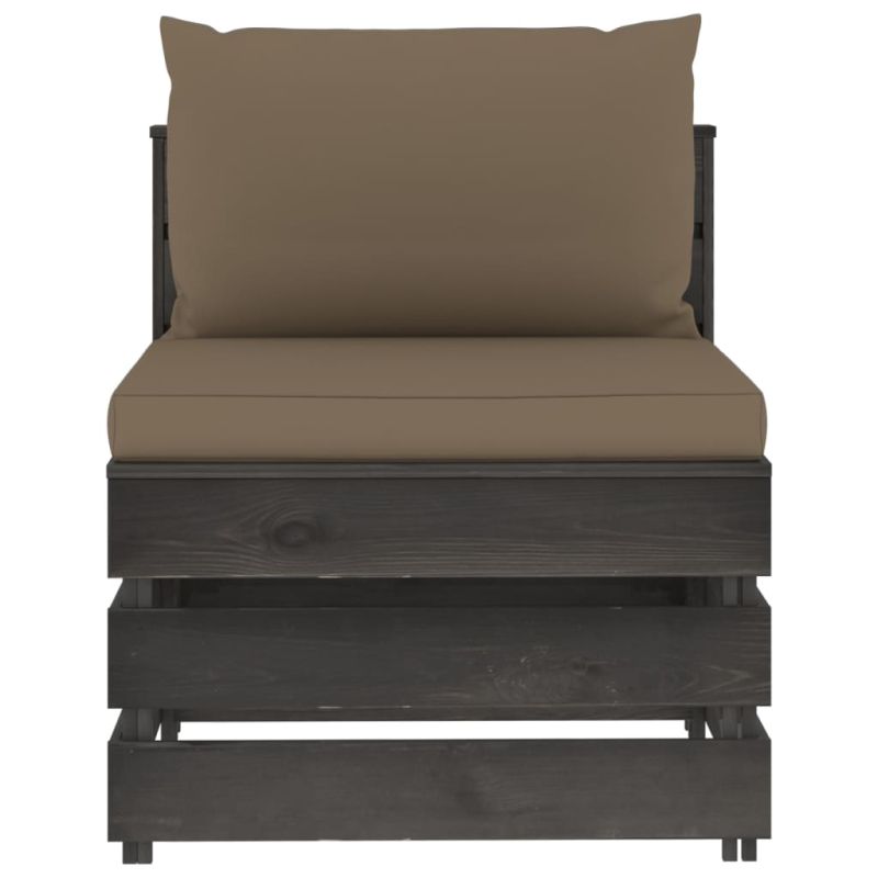 Секционен ъглов диван с възглавници, сиво импрегнирано дърво