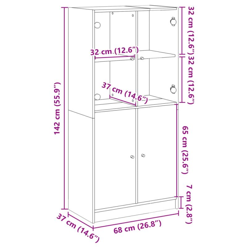 Този висок шкаф предоставя идеално решение за организиране на вашите книги и ще добави модерен чар към вашия интериор. Издържлив и здрав материал: Инженерната дървесина е с изключително качество с гладка повърхност и също така се отличава със здравина, стабилност и устойчивост на влага.Достатъчно място за съхранение: Страничният шкаф предлага достатъчно място за съхранение за поддържане на вашата колекция от книги, списания и документи в добро състояние.Стабилен и здрав плот: Горната част на високия шкаф за съхранение е идеална за излагане на вашите декоративни предмети, рамки за картини и саксийни растения.Практичен дизайн: Пазете най-важните вещи от прах, като ги скриете зад вратичките. Освен това черните дръжки улесняват отварянето на високия шкаф. Внимание:За да предотвратите преобръщане, този продукт трябва да се използва с предоставеното устройство за закрепване на стена.