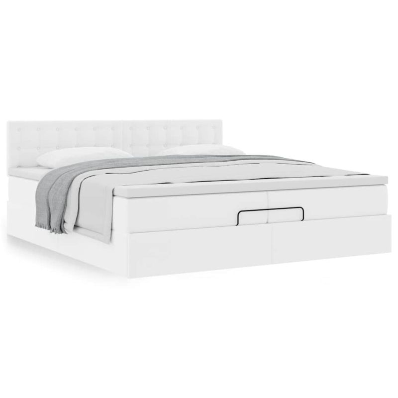 Начало Дом и градина Мебели Легла и аксесоари Легла и рамки за легла Османска легло с матраци, бяло, 200x200 см, изкуствена кожа