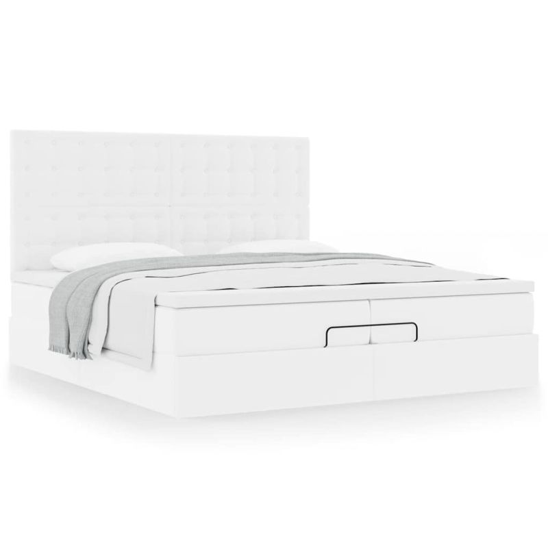 Османска легло с матраци, бяло, 200x200 см, изкуствена кожа