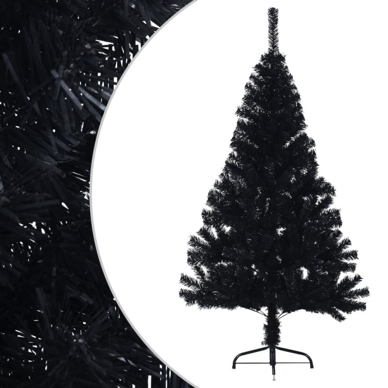 Изкуствена половин коледна елха със стойка, черна, 120 см, PVC