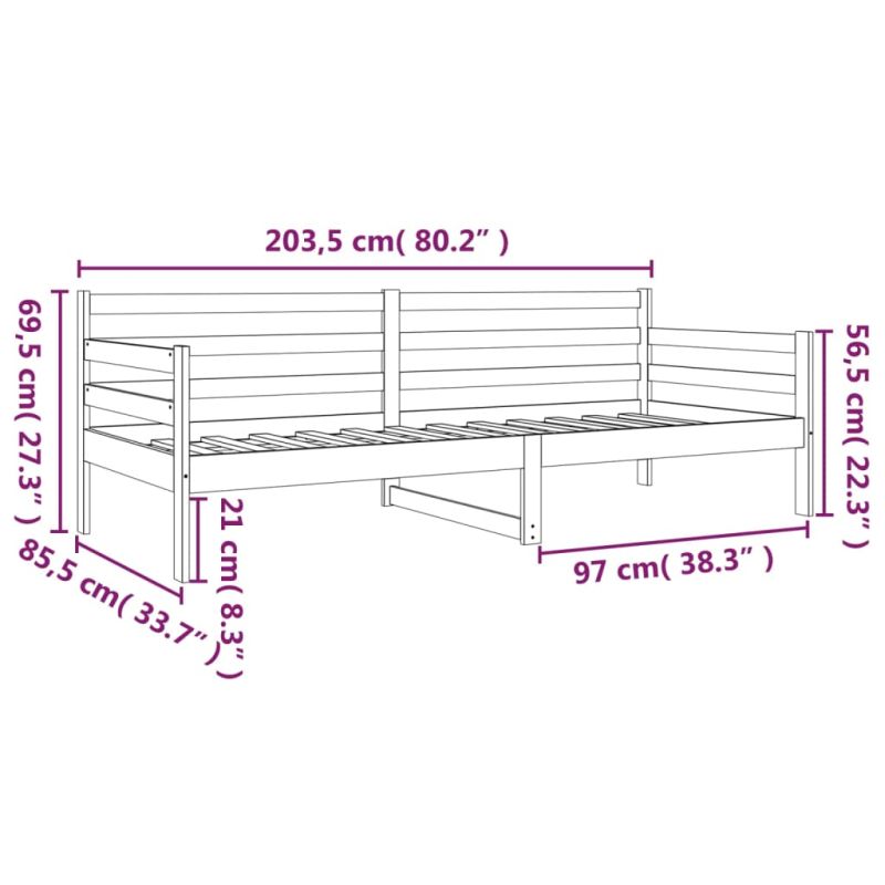 Дневно легло без матрак, 80x200 см, борово дърво масив