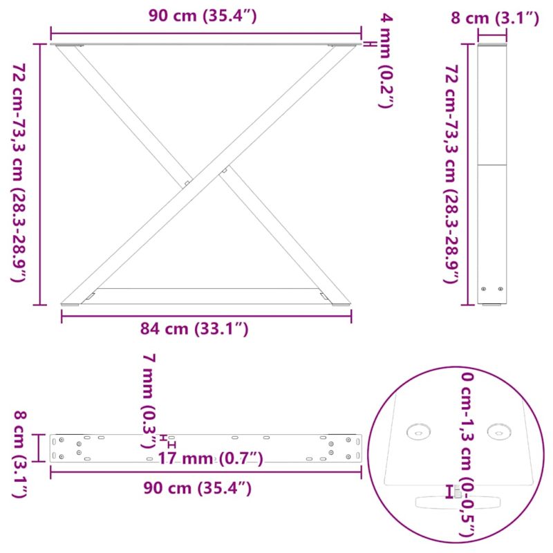 Тези крака за трапезарна маса съчетават форма и функция. Това е идеален избор за персонализиране на вашата трапезарна маса. Издръжлив материал: Този крак за трапезарна маса е изработен от прахово боядисана стомана, което го прави здрав и дълготраен.Практичен дизайн: Този крак за трапезарна маса включва регулируеми нивелири, осигуряващи стабилност дори на неравни подове и минимизиращи драскотини по пода. Освен това, скобата е с предварително пробити отвори и включени в доставката винтове, които могат да се използват за закрепване на крака към плота на масата (не са включени), което улеснява сглобяването.Модерна естетика: Кракът на масата предлага елегантен и съвременен вид. Изчистените му линии и геометричен дизайн подобряват цялостния вид на мебелите. Полезно е да знаете:Доставката съдържа само крака за маса, плотът на масата не е включен.