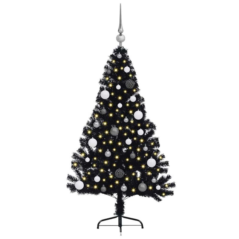 Изкуствена коледна елха с подсветка Черно 150 cm ПВЦ