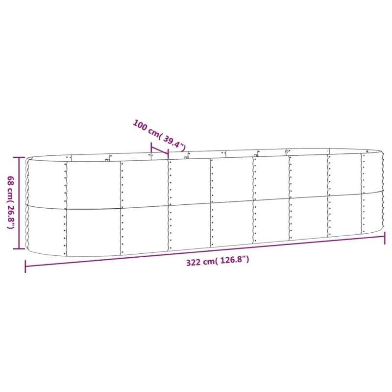 Тази градинска повдигната леха би била чудесен избор за любители градинари, които искат да украсят своите градини, балкони или вътрешни дворове. Здрава рамка: Изработена от поцинкована стомана и снабдена с вътрешни поддържащи скоби, тази саксия за засаждане е изключително здрава и издръжлива.Първокласен материал: Лехата е прахово боядисана против ръжда и корозия. Поради това е устойчива на атмосферни влияния и много практична за употреба на открито.Достатъчно пространство: Градинската повдигната леха е достатъчно дълбока и широка, за да побере голямо количество почва и да осигури достатъчно място за вашите растения, зеленчуци, билки и цветя. Не използвайте този артикул, ако някой от компонентите е счупен, скъсан или липсва.