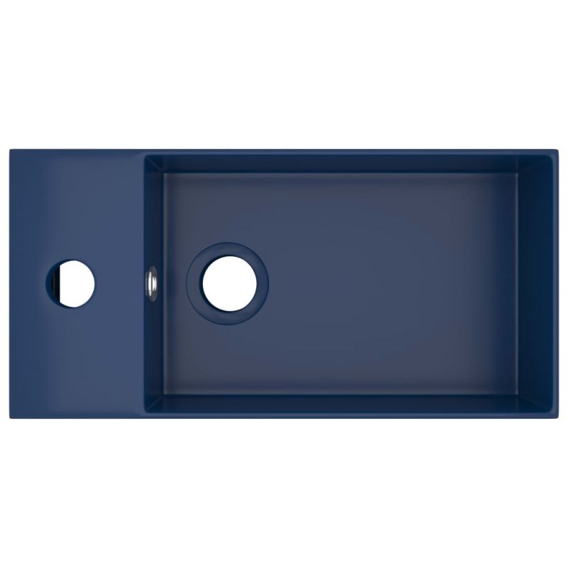 Нашата мивка за баня добавя модерен вкус към всеки декор за баня. Подходяща е и за гримьорна, кухня или работно място. Качествената керамика с матова повърхност се почиства лесно. Разполага с отвор преливник за изтичане на вода при напълване. Включен е отвор за инсталиране на кран. Дренажният отвор е с диаметър 4,5 см. Можете да я инсталирате върху плот. Моля, обърнете внимание: Кранът не е включен в доставката. Децата трябва да бъдат наблюдавани, за да се гарантира, че не играят с уреда. Пазете децата далеч от зоната за сглобяване. Внимание: Прочетете внимателно инструкциите преди употреба и ги запазете за по-нататъшни справки.