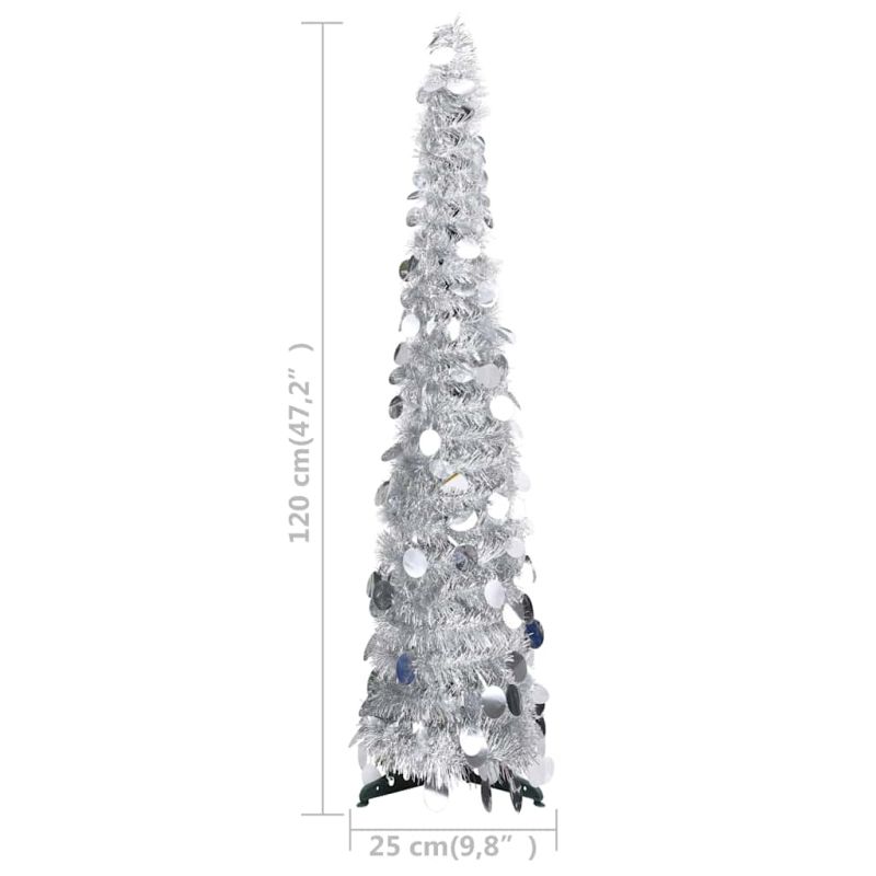 Pop-up изкуствена коледна елха, сребриста, 120 см, PET
