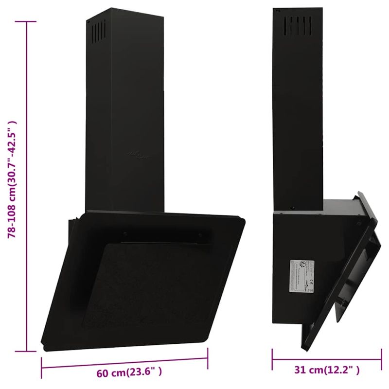 Стенен абсорбатор, 60 см, инокс и закалено стъкло, черен